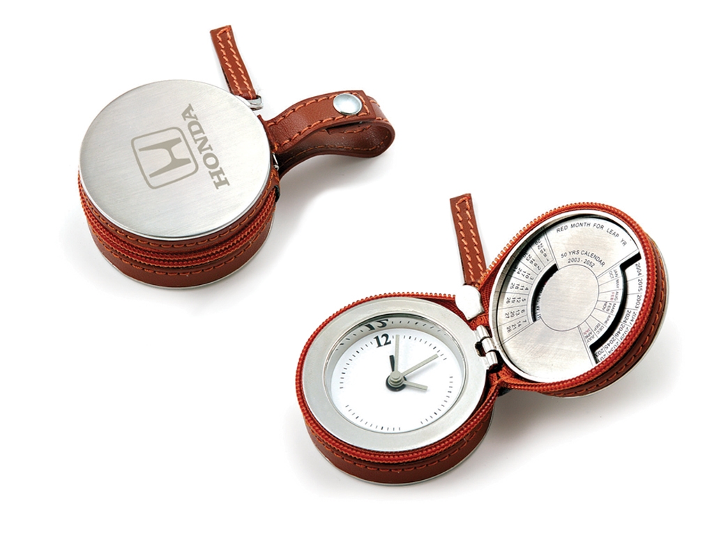 Seyahat Saati 50 Yıl Takvimi Deri Kaplama-Fermuarlı Koruma Ebat : 5 cm x 5 cm x 2,5 cm