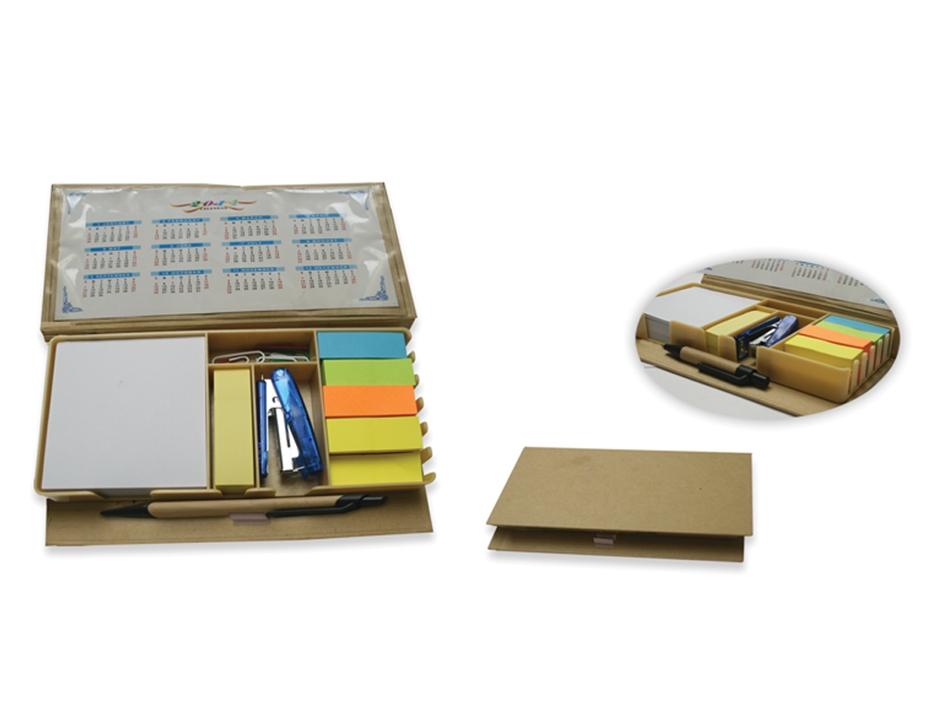 Geri Dönüşümlü Not Kağıtlı Naturel Kalemli - 2015 - 16 Takvim Kitap Ayracı - Mini Zımbalı Ataçlı - Masa Seti Ebatı 200 x 100 x 30 mm